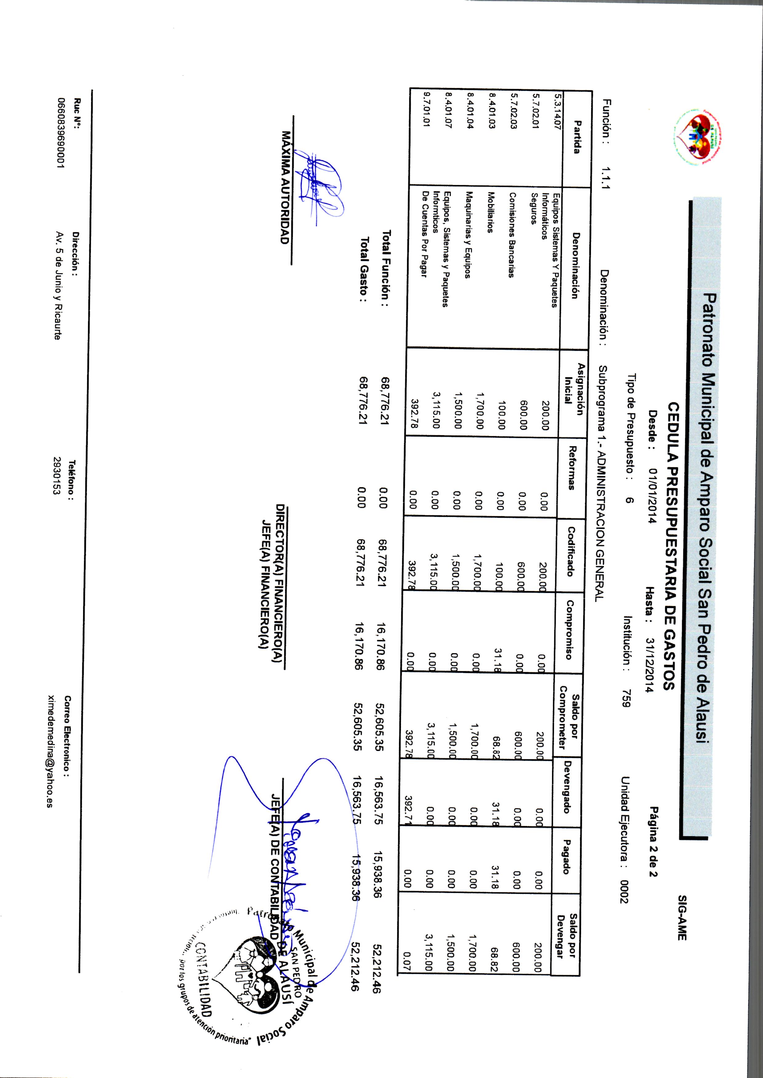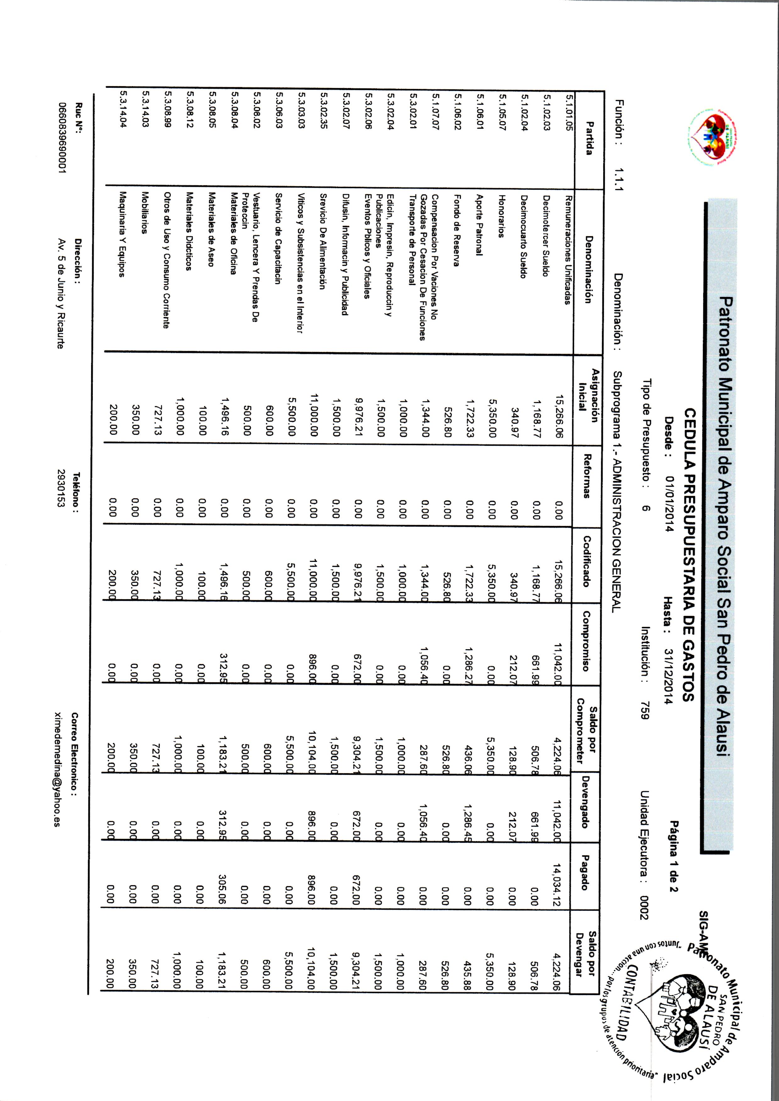 Cedula Presupuestaria de Gastos 02 PSPA 2014