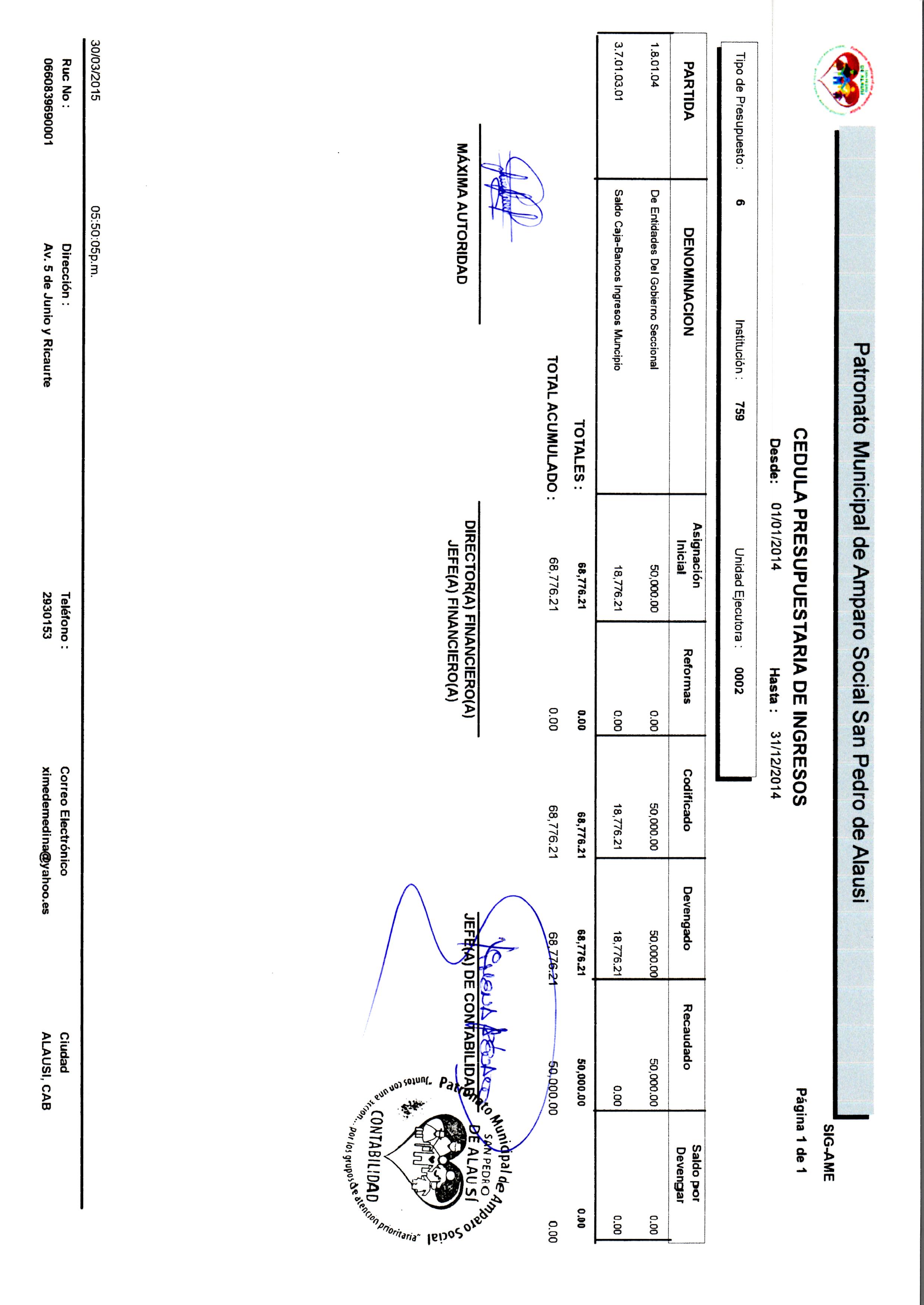 Cedula Presupuestaria de Ingresos PSPA 2014